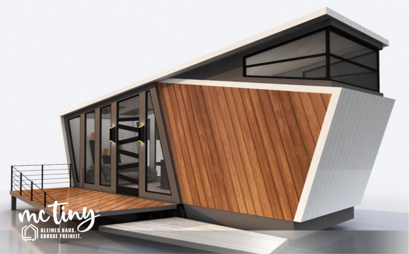 Mit seinen kühnen, klaren Kanten und großzügigen Glasflächen, die eine freie Sicht ermöglichen, fällt das mcTiny-HOUSE MODELL MC 7 sofort ins Auge.