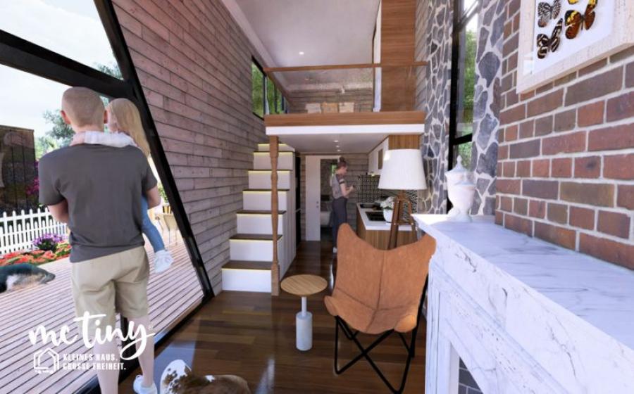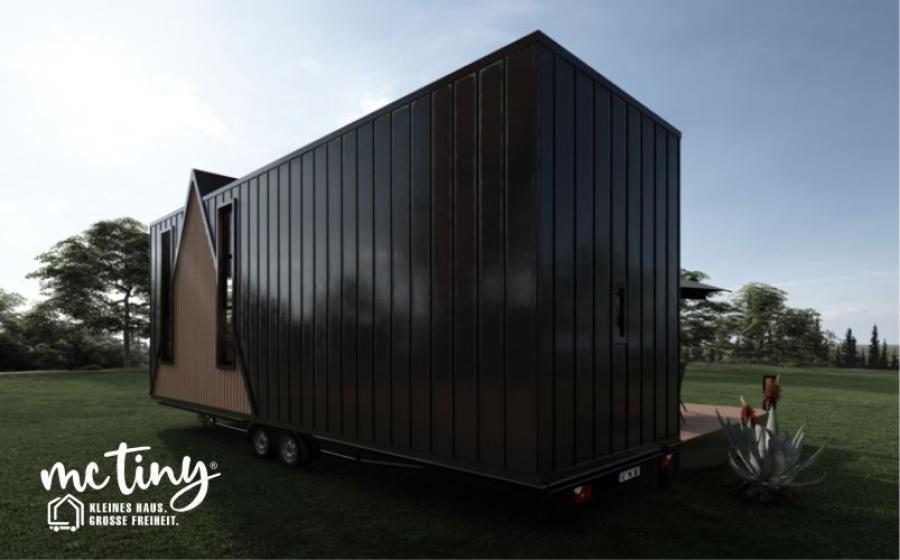 Unser mcTiny-HOUSE MODELL MC 6: Mit 25 Quadratmetern Wohnfläche und raumhohen Decken vereint es modernste Tiny-House-Architektur mit überlegener Technik.