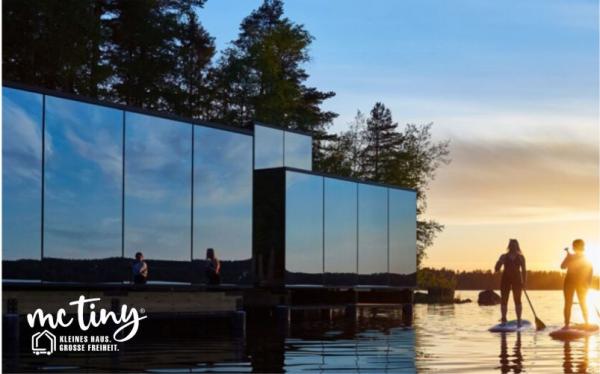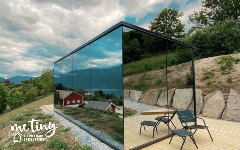 Das mcTiny-HOUSE MODELL MC 10, liebevoll unser Spiegelhaus genannt, ist ein Meisterwerk der Architektur. Die Spiegelflächen verleihen dem Haus eine schwebende Leichtigkeit und reflektieren die umgebende Natur auf atemberaubende Weise, wodurch eine nahtlose Symbiose zwischen Innen- und Außenraum entsteht.
